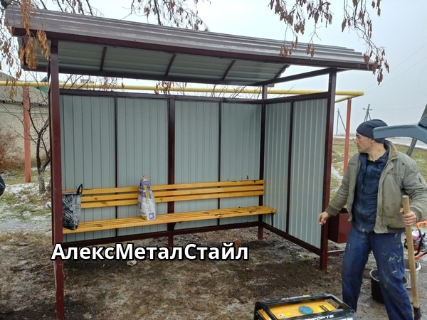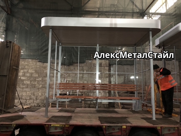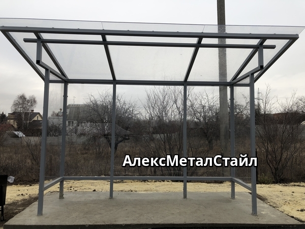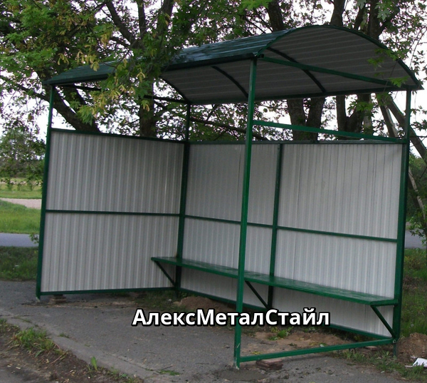 Обшивка стен и крыши осуществляется оцинкованным листом с полимерным покрытием RAL или монолитным поликарбонатом, что позволяет остановке служить долгие годы.