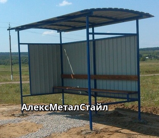 Металлическая остановка для транспорта от АлексМеталСтайл представляет собой прочно сваренный каркас из профильной трубы, окрашенной специальным грунтом и эмалью с антикоррозийным свойством (или краской Hammerite).